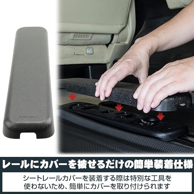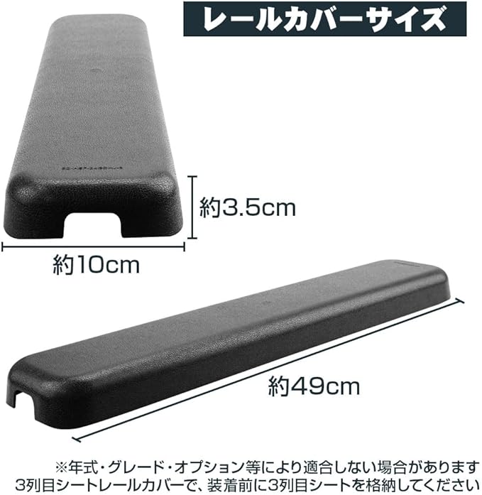 【セット内容】シートレールカバー 2点 【サイズ(約)】49cm 10cm 3.5cm 【カラー】ブラック 【材質】ABS 【適合車種】新型 アルファード40系/ヴェルファイア40系 ※ご購入前に必ず適合車種をご確認ください。