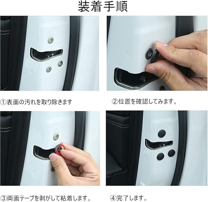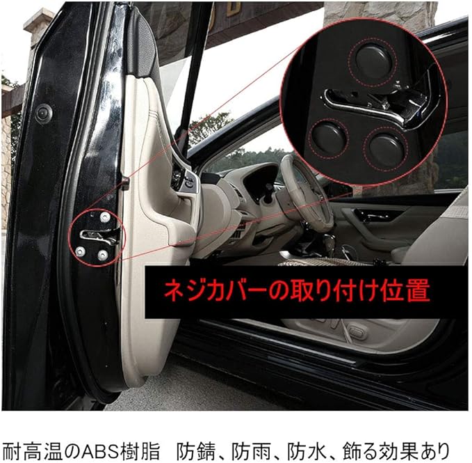 車のドア用ネジカバーは、露出したビスやネジ穴をしっかりとカバーし、錆や水の侵入を防止します。