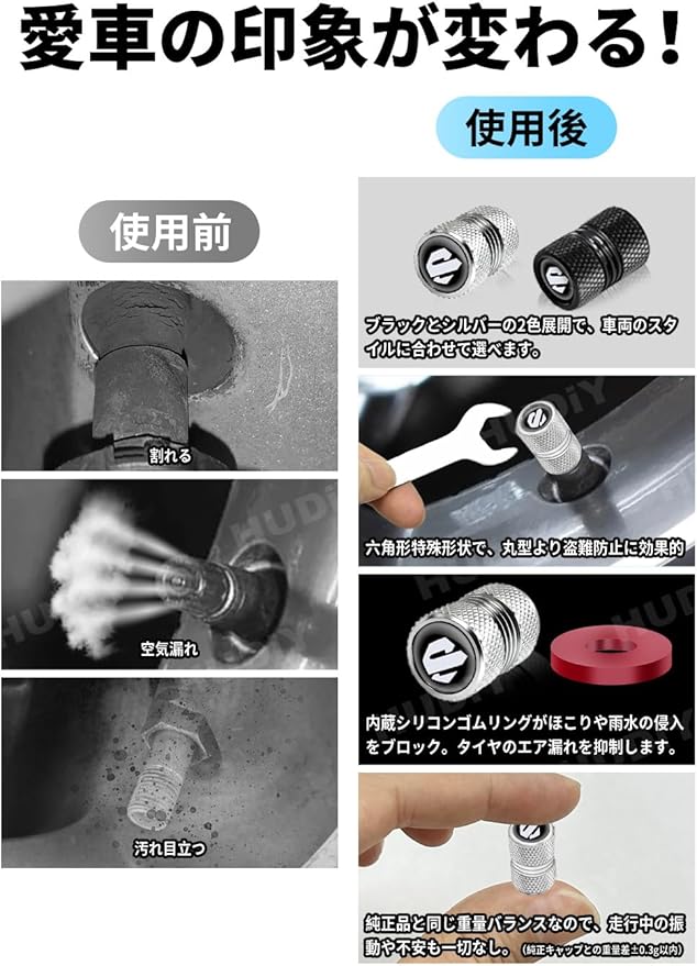 【安全を守る】内蔵された高品質シリコン密封リングが、バルブコアにぴったりと密着。空気漏れを効果的に防止し、タイヤの空気圧を常に安定させます。これにより、燃費の維持と走行安全性の向上に貢献します。
