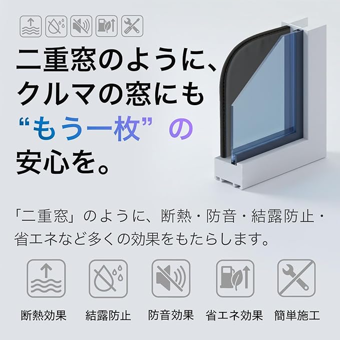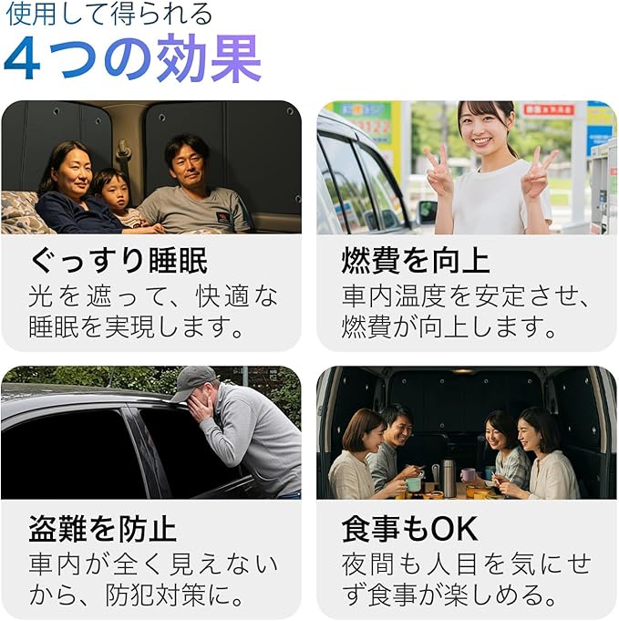 【光りを遮断】特殊生地で光りを遮断し、車内の温度を快適に保ちます。外からの視線を遮るため、車中泊にも最適です。