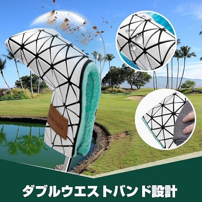 【高品質な素材】:ゴルフヘッドカバーは高品質な素材を採用しております。表地は耐磨耗性の良い合成皮革(PUレザー)で、耐久性が良くて、長持ちです。更に、防水で、うっかりで雨に降られても心配なしで、汚れなどでも気軽に拭き取れます。内側のボアも厚めにし、肉厚のあるしっかりした作りで大切なゴルフクラブをキズから守れます。