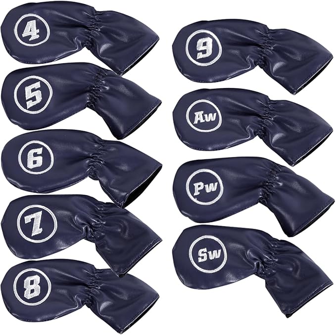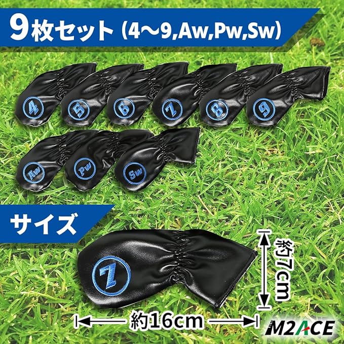 アイアン ヘッドカバー ウェッジカバー PUレザー 9枚セット 刺繍 ゴルフクラブ メンズ 男性 アクセサリー スポーツギア プレゼント お祝い