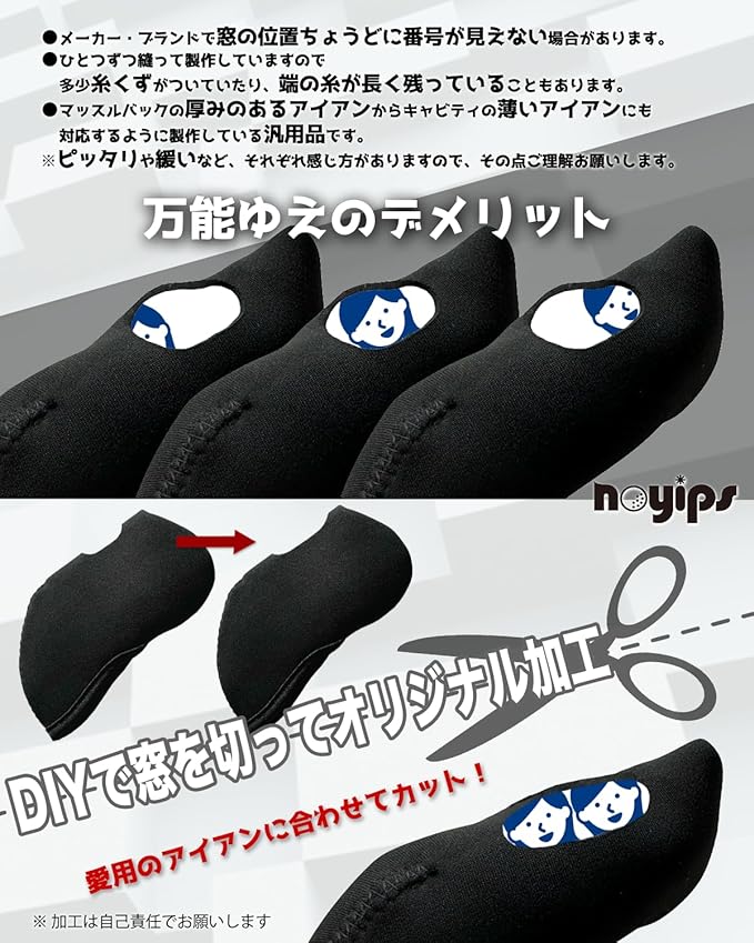 noyips アイアンカバー ゴルフ ヘッドカバー 窓付き ブラック 10個セット hibikurasu GOLF