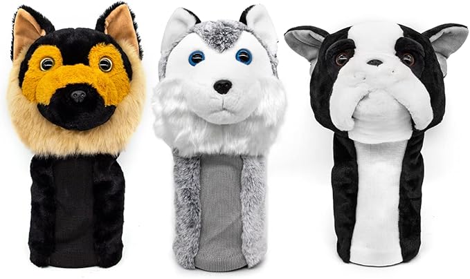 ゴルフドライバーカバー クラヘッドゴルフカバー 動物柄 ゴルフドライバーカバー かわいいドッグDog ゴルフクラブヘッドカバー 460 CCウッドドライバー用 ぬいぐるみゴルフクラブヘッドカバー