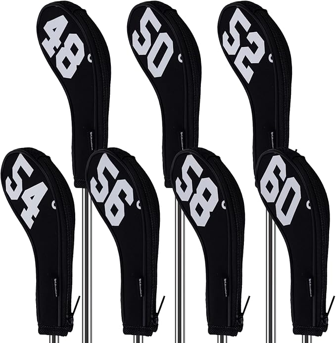 Andux ゴルフ ウェッジ アイアン クラブヘッドカバー 両側度数 ロングネック ジッパー付き 7個/セット