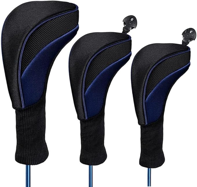 クラブヘッドカバー ロングネックタイプナイロン3点セット クラブウッドカバー ドライバー用 フェアウェイウッド用 ユーティリティ用 番号タグ付き 軽量 耐摩耗 長持ち メンズ・レディース兼用