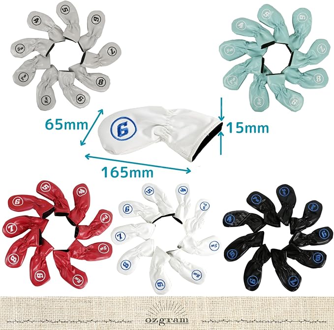 【9枚セットでフルカバー】 4番〜9番、AW、PW、SWまで揃った9枚セットで、アイアンをしっかり保護。 統一感のあるデザインなのでキャディバッグの中もスッキリ整理できます。