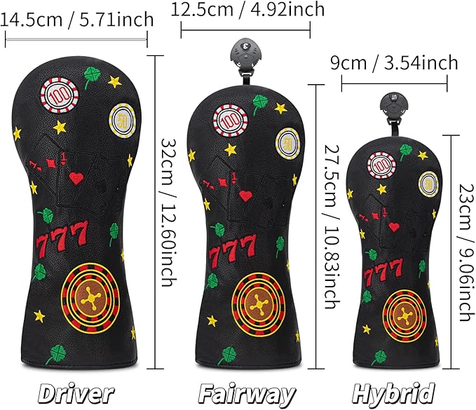 ゴルフヘッドカバー 777 トランプ ゴルフカバー ポリウレタンヘッドカバーセット ドライバーフェアウェイハイブリッドウッズ アイアンウェッジヘッドカバーに適合。