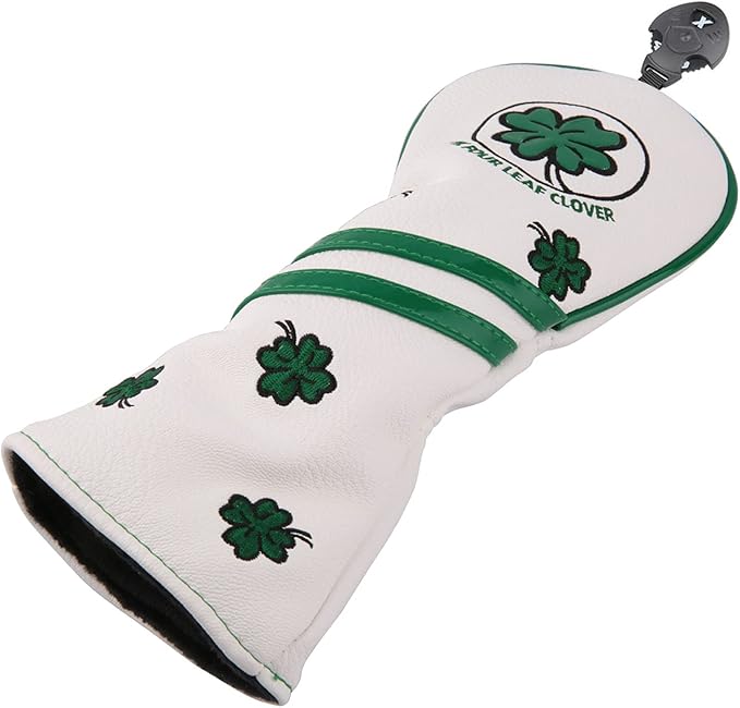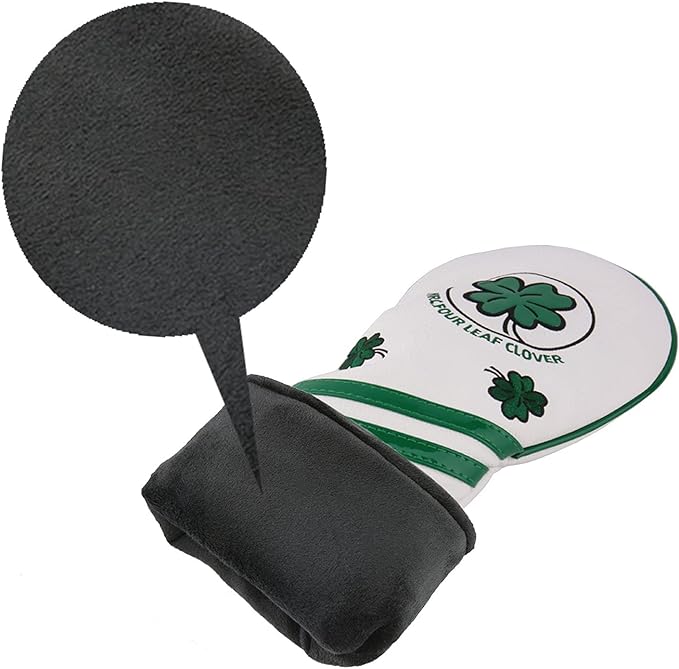 ゴルフヘッドカバー 四葉のクローバー ゴルフグラブ3点セット/ ドライバーDR用カバー/ウッド用 FW/ユーティリティ用 UT 白 単品1個販売/3点セット ホワイト