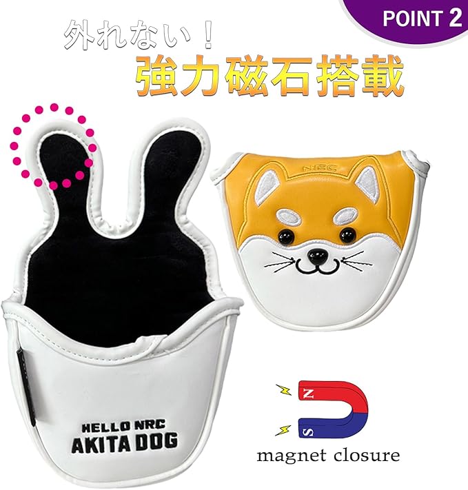 wakae ゴルフ ヘッドカバー パターカバー センターシャフト パターカバー オデッセイ 2ボール 対応 マグネット式 秋田犬 単品販売