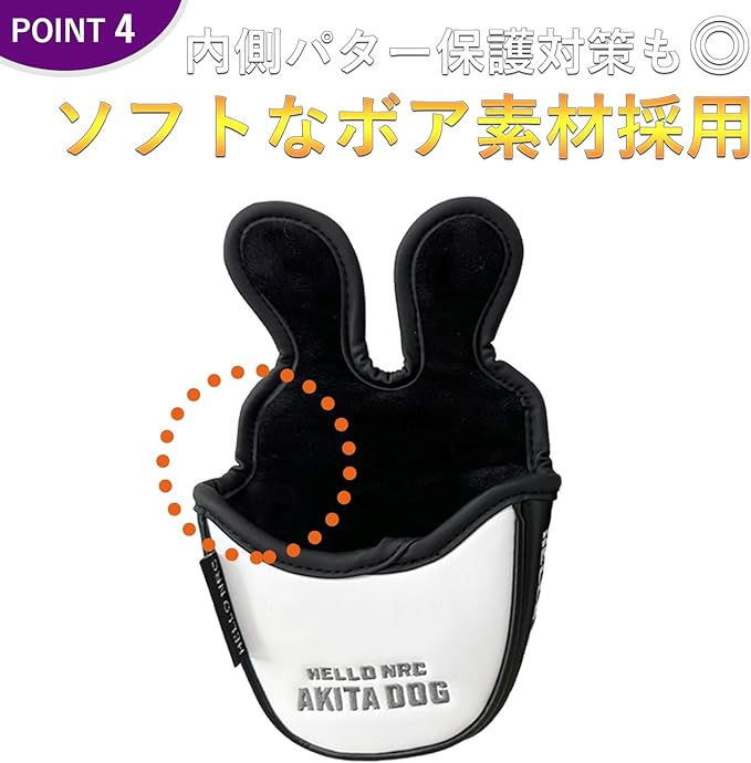 ※人気シリーズ、可愛い秋田犬2種デザインのセンターシャフト専用パターカバー ※センターシャフト専用パターカバー ※マグネット式の開閉で、ヘッドの出し入れが簡単です! 厚手のスポンジでヘッドを保護します。 内側は柔らかいボア素材になっていますので、大切なパターを傷や汚れから守ります。 ※センターシャフト専用パターカバー マグネットタイプ オデッセイ 2ボールにも対応 ※サイズ:約 13 10.5cm ※材質:高級PUレザー デザイン:秋田犬ブラック/秋田犬イエロー ※商品内容:カバー1個