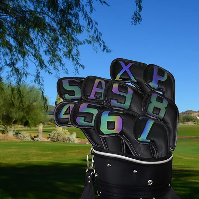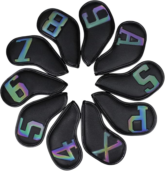 Scott Edward 10PCSウェッジアイアンゴルフヘッドカバーセットPU防水性と耐久性のある強力な磁気、大きな数字でほとんどのブランドクラブに最適