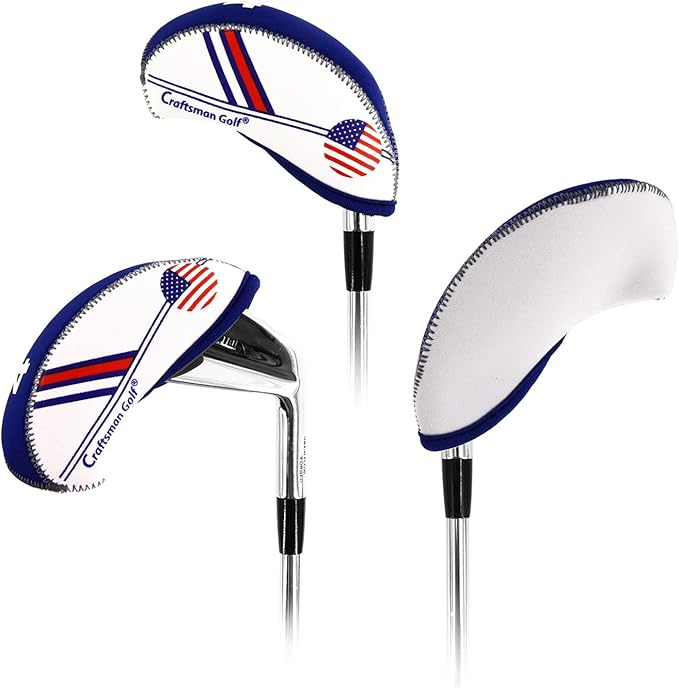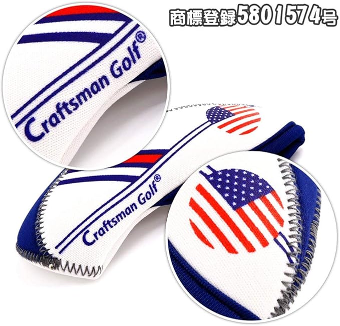 CRAFTSMAN(クラフトマン)ゴルフアイアンカバー クラブヘッドカバー 10枚セット (4-9,PW,AW,SW,LW) ネオプレン製 伸縮性ある アメリカフラグ柄 ホワイト ブルー