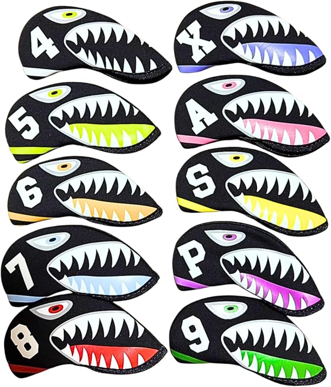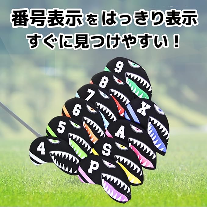 [YOUSTEP]アイアンカバー ゴルフ アイアン カバー 番手 おしゃれ セット 洗濯可能 傷防止 ヘッドカバー サメ 鮫