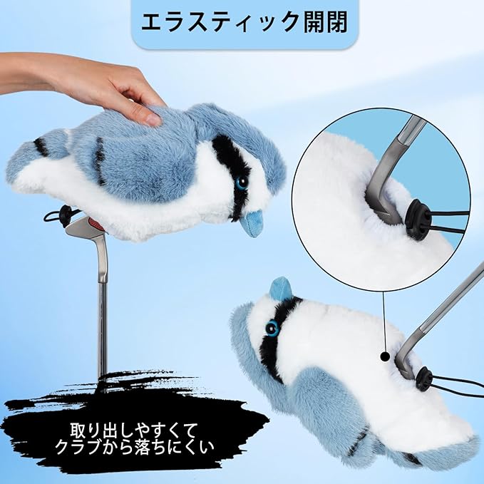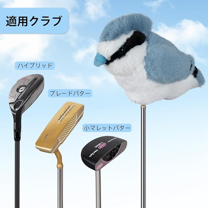 ゴルフカバー ブレードパター/ハイブリッド/小マレットパター エラスティック開閉 ピンタイプ キャラクター クラブヘッドカバー アオガラ ぬいぐるみタイプ 着脱スムーズ 癒し 単品 動物 アニマル 可愛い プレゼント
