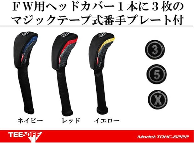 フェアウェイウッド用カバー、マジックテープ式番手プレート3枚付(3、5、X)