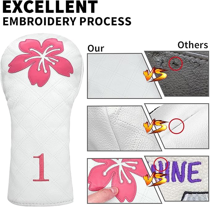 ゴルフヘッドカバー ゴルフクラブグリッド 桜デザイン ゴルフカバー PUヘッドカバーセット ドライバーフェアウェイウッドハイブリッドユーティリティウッズアイアンウェッジヘッドカバーにフィット。