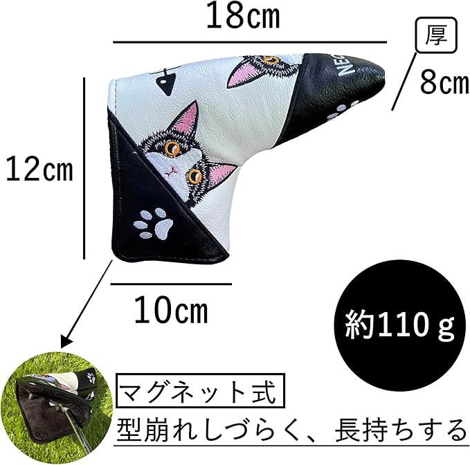 【ULS NORK】ゴルフ パターカバー 猫 動物 ピンタイプ 対応 マグネット かわいい ヘッドカバー 肉球刺繍