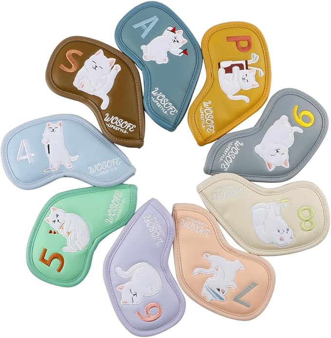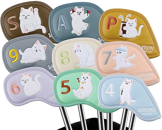 ゴルフアイアンカバー 軽量 ウェッジカバー マジックテープ開閉 防水 高級PUレザー 可愛い 番号刺繍