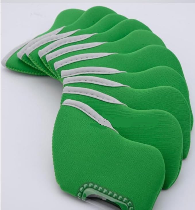 ゴルフ アイアン ヘッド カバー 番手 見える 窓 付 ソフト 素材 10個 セット 色 々 選べる (グリーン)