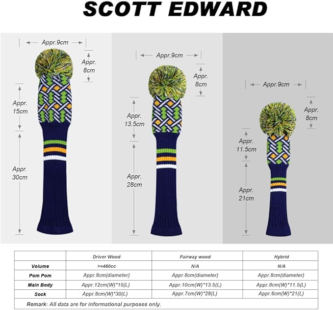 Scott Edward 1 個入り 編み物ゴルフクラブカバー(フェアウェイウッド用) 3 5 番ウッドに適合 ポンポン付き 柔らかく可愛いゴルフヘッドカバー 回転式ナンバータグ付き(よんしょくがら)