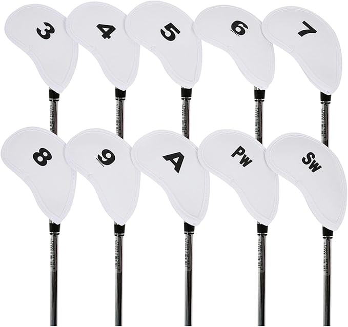 ゴルフアイアンカバー 10枚セット 番手付 見やすい ヘッドカバー クッション素材 保護カバー