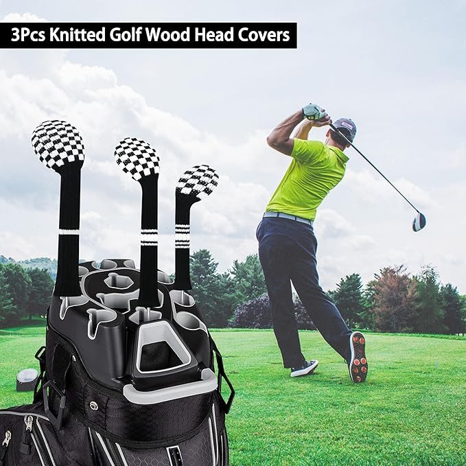 LeFeng ゴルフクラブカバー ニットゴルフクラブカバー 460ccドライバーフェアウェイウッドとハイブリッド用 ポンポンなし