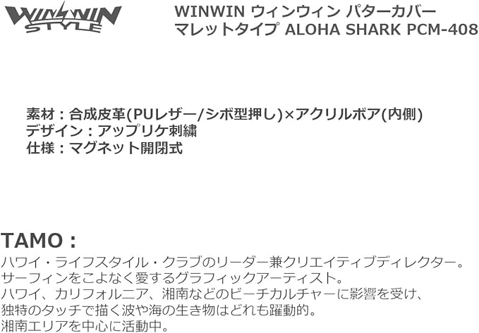 WINWIN STYLE ウィンウィンスタイル ALOHA SHARK パターカバー ピンタイプ/マレットタイプ 【TAMOコラボモデル】