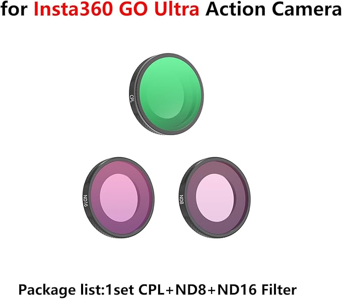 CPL+ND8+ND16フィルターアクセサリーは、360 GO Ultraアクションカメラに適しています。 (パッキングリスト:CPLフィルター+ND8/ND16フィルター)