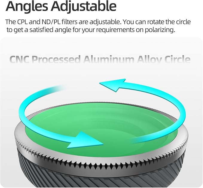 CPLとNDは調整可能なフィルターで、撮影中に必要に応じて回転させ、満足のいく偏光要件を満たすことができます。
