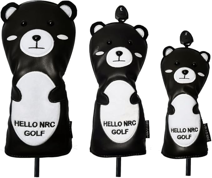 ゴルフヘッドカバー ドライバー440cc 460cc用カバー ウッド用カバー ユーティリティ UT用カバー 3点セット 防水仕様 クロクマ (3点セット)