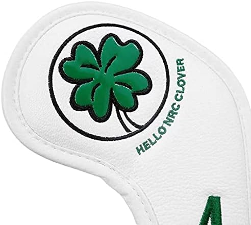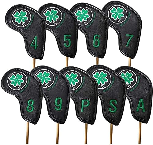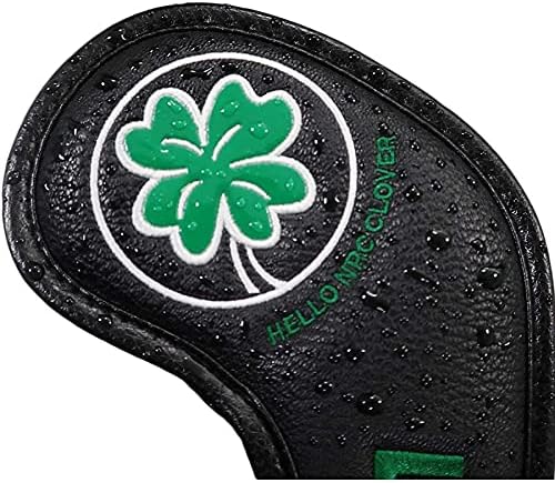 ゴルフアイアンカバー レザー 刺繍入り 防水 4番~9番 AW PW SW 9枚 セット 番手付き クローバー模様