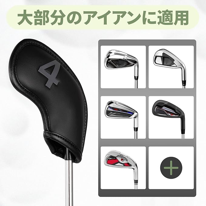 ゴルフアイアンカバー ウェッジカバー クラブヘッドカバー セット 10枚(4-9,P,G,S,L) 黒い合成皮革 新規設計 左右兼用
