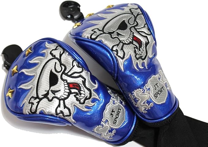 フェアウェイウッド用のカバー スカルキングシリーズ 3・5番 2個セット ブラック ・ブルー・赤・白 セレクトプラザ
