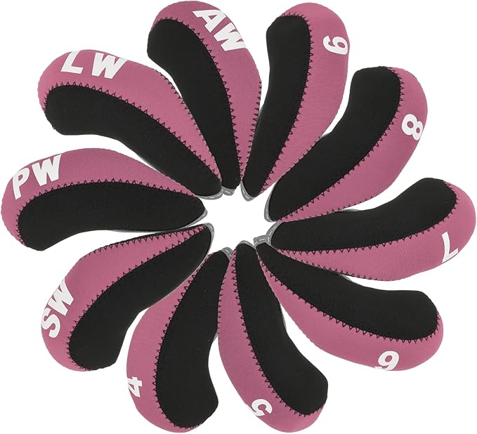 PATIKIL ゴルフクラブヘッドカバー、10個セット 番号付きアイアンカバー付き ネオプレンドライバーカバー ゴルフ愛好者向けギフト メンズ・レディース用 ピンク/レッド
