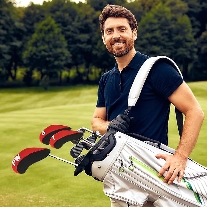 PATIKIL ゴルフクラブヘッドカバー 10個セット ナンバー入りアイアンカバー ネオプレンドライバーカバー ゴルフ愛好者への贈り物 オレンジ/レッド