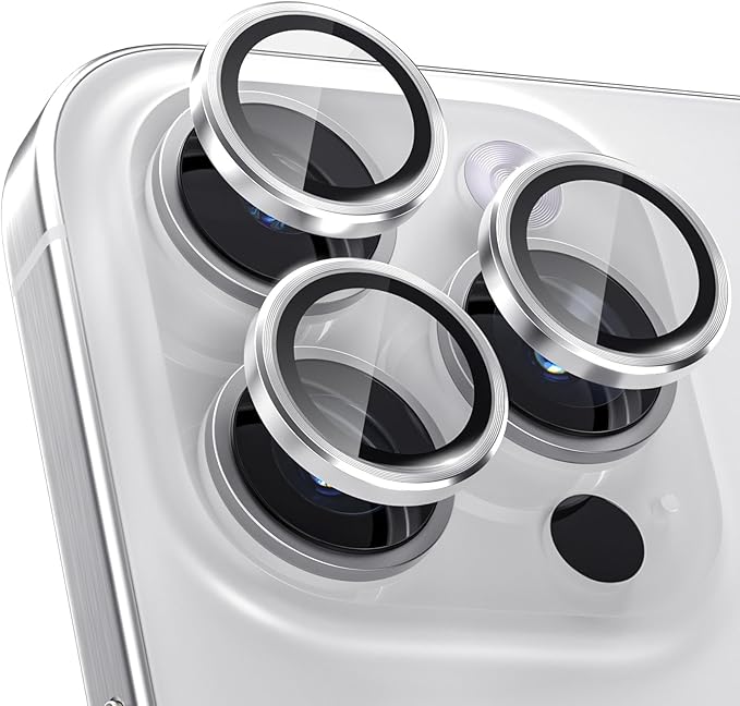 CloudValley iPhone 16Pro /iPhone 16 Pro Max用カメラレンズプロテクター、ウルトラHD強化ガラスカメラカバー[ケースフレンドリー]メタル個別レンズスクリーン保護リング、シルバー