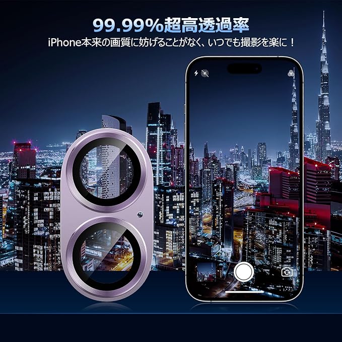 【iPhone本来の高画質を楽しむ】本製品は露出オーバー防止のために、カメラ覆う部分に黒い縁取りをした設計を採用。さらに強化ガラスにも光学コーディング(AR)技術を採用し、光の透過率は99.99%に達し、装着していない状態のように、繊細な写真の撮影が可能です。