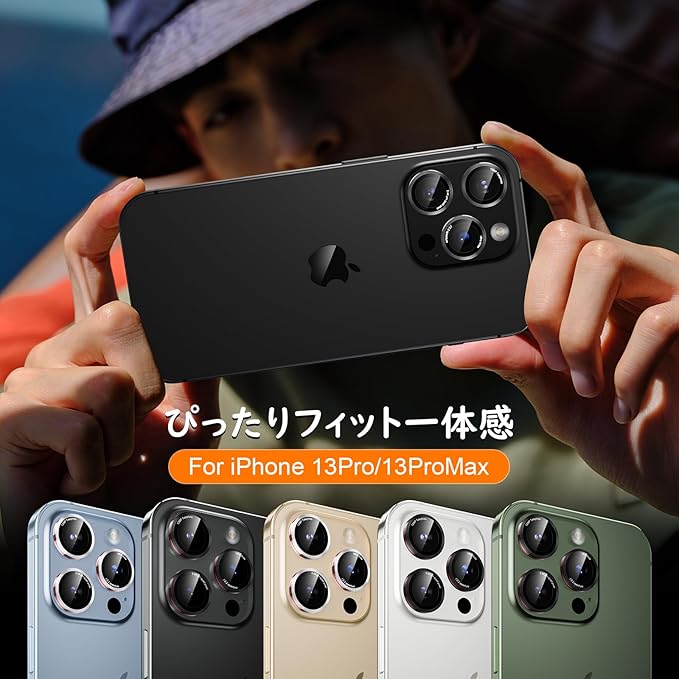 【露出オーバー防止・超高透過率・撮影への影響なし】アイフォン13プロ/13プロマックスカメラカバーは黒い縁取りデザインで露出オーバー防止でき、フラッシュ使用時の光の乱反射を抑え、写真が白っぽくなる現象を軽減します。さらにARコーティング技術により、フィルムを装着していることを忘れるほどの高い透過率を実現。iPhone本来の鮮明な画質をそのままに、美しい撮影をサポートします。