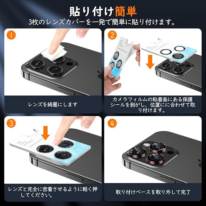 【スマホケースと干渉なし】iPhone 13 Pro Max/iPhone 13 プロのレンズにカスタム設計されたレンズフィルムは、引っかかる感がなく、ほとんどのケースに干渉せず装着可能。★★★品質保証付き:当店でご購入の製品は6ヶ月間の保証サービスをご提供しております。「初期不良」、「違う商品が届いた」、「ヒビ入り/割れた」など場合、弊社にご連絡いただければ迅速に対応いたします。