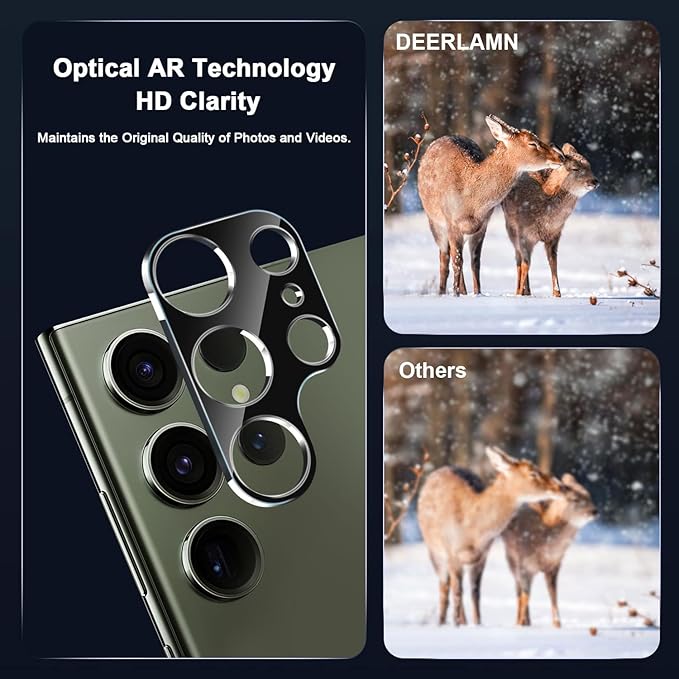 DEERLAMN [3枚パック Samsung Galaxy S24 Ultraカメラレンズプロテクター(6.8インチ)用 硬度9H 傷防止 取り付け簡単 強化ガラス - ブラック