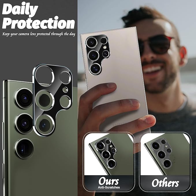 最大保護: 硬度9Hのカメラレンズプロテクターは、Samsung Galaxy S24 Ultraカメラのデバイスをナイフ、鍵、その他の硬い物質による不要な擦り傷や傷から効果的に保護します。