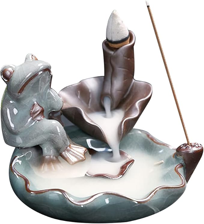 香炉 陶器 かわいい カエル 蛙 癒し香炉 陶芸 倒流香 仏壇用香炉 お試しお香付き セラミック お香立て 置物 開運 風水 逆流香 流川香 還流香 茶道用品 和風 書斎 リラックス インテリア