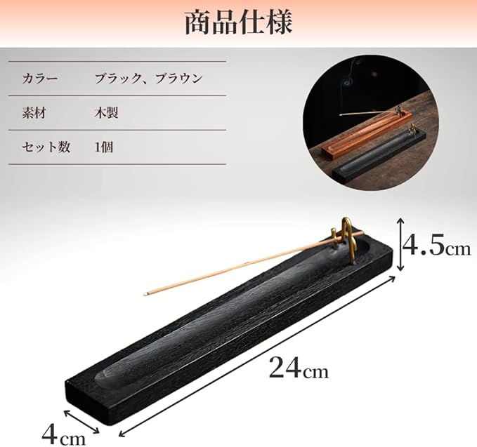 【リラックスタイムを彩るデザイン】線香立てとしての機能性だけでなく、視覚的にも癒しを与えるデザイン。木のぬくもりと香りの相乗効果で、自宅でのリラックスタイムをさらに豊かにします。