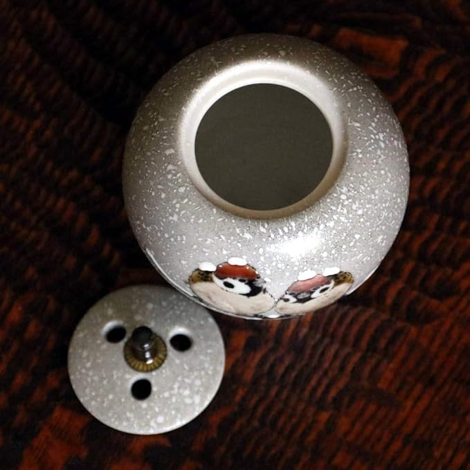頭にうっすらと雪をのせたふっくらとした雀を描いた香炉です。