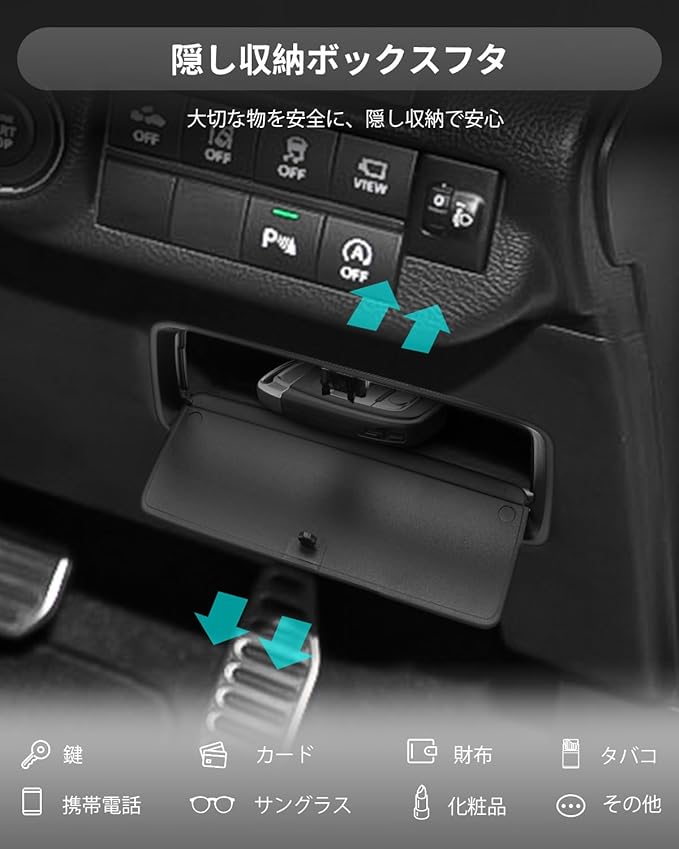 4.【プライバシー収納】フロンクス 収納ボックス フタ 見えない場所に貴重品をスマート収納。鍵や財布、イヤホン、アクセサリーなどの小物をスッキリと隠して収納できる設計。フタ付きで中身が外から見えず、車上荒らし対策にも。駐車中の安心感がグッと高まります。