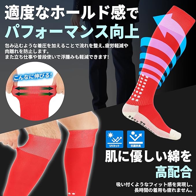 [QQOLi] 【現役整体師監修】 滑り止め 靴下 ソックス 着圧 グリップ力 衝撃吸収 通気性 ランニング 登山 ゴルフ サッカー フットサル スポーツ メンズ レディース 速乾吸収 抗菌防臭【グリップ&リカバリー】 | KAZESHOP