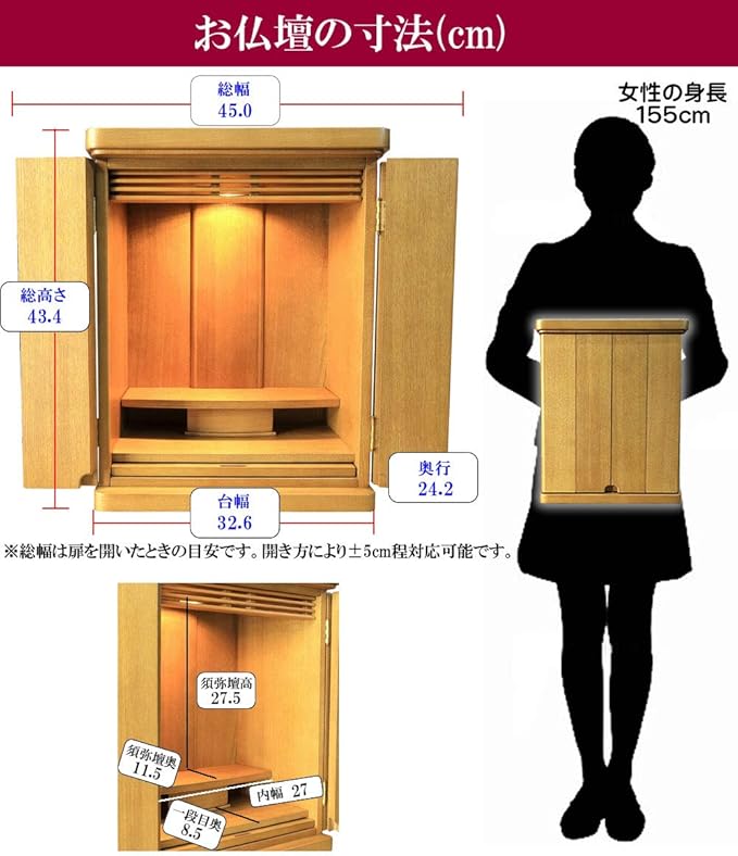 【コンパクトでも中は広々】超コンパクトボディながら内陣はスッキリ広々。仏具を余裕をもって安置でき、快適なお参りを実現します。小さい仏壇は中が狭くて…という悩みも解決です。