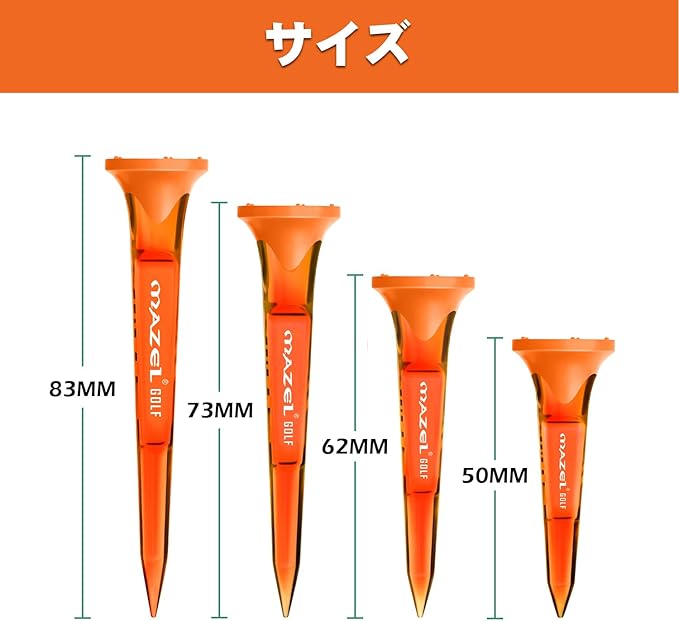 MAZEL (マゼル) 透明プラスチック製 ゴルフティー 飛距離アップ 高耐久 5本爪デザインで の安定性 折れにくい ロングティー/ショートティー ドライバー 8本入 50mm/62mm/73mm/83mm
