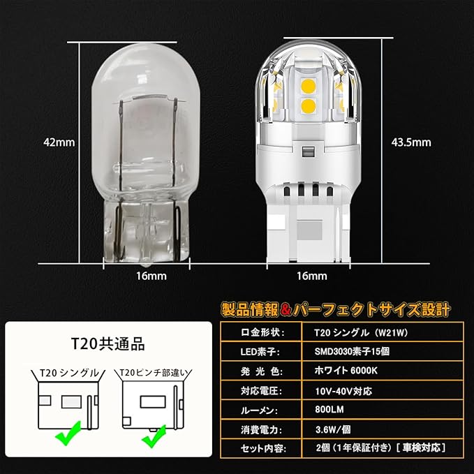 【高輝度&無極性設計】 T20 led シングル バックランプ ホワイト. 高拡散15LED 3030SMD、すみずみまで均一な光を照射。360 全方位照射できます。 T20 LED バックランプ 全面的に導電でき、明るさ1500LM、純正バルブに比べて300% 明るさUPします!極の明るさが実現します。極性フリーで、取付は簡単!原箇所のまま差し込むだけで取付ます。